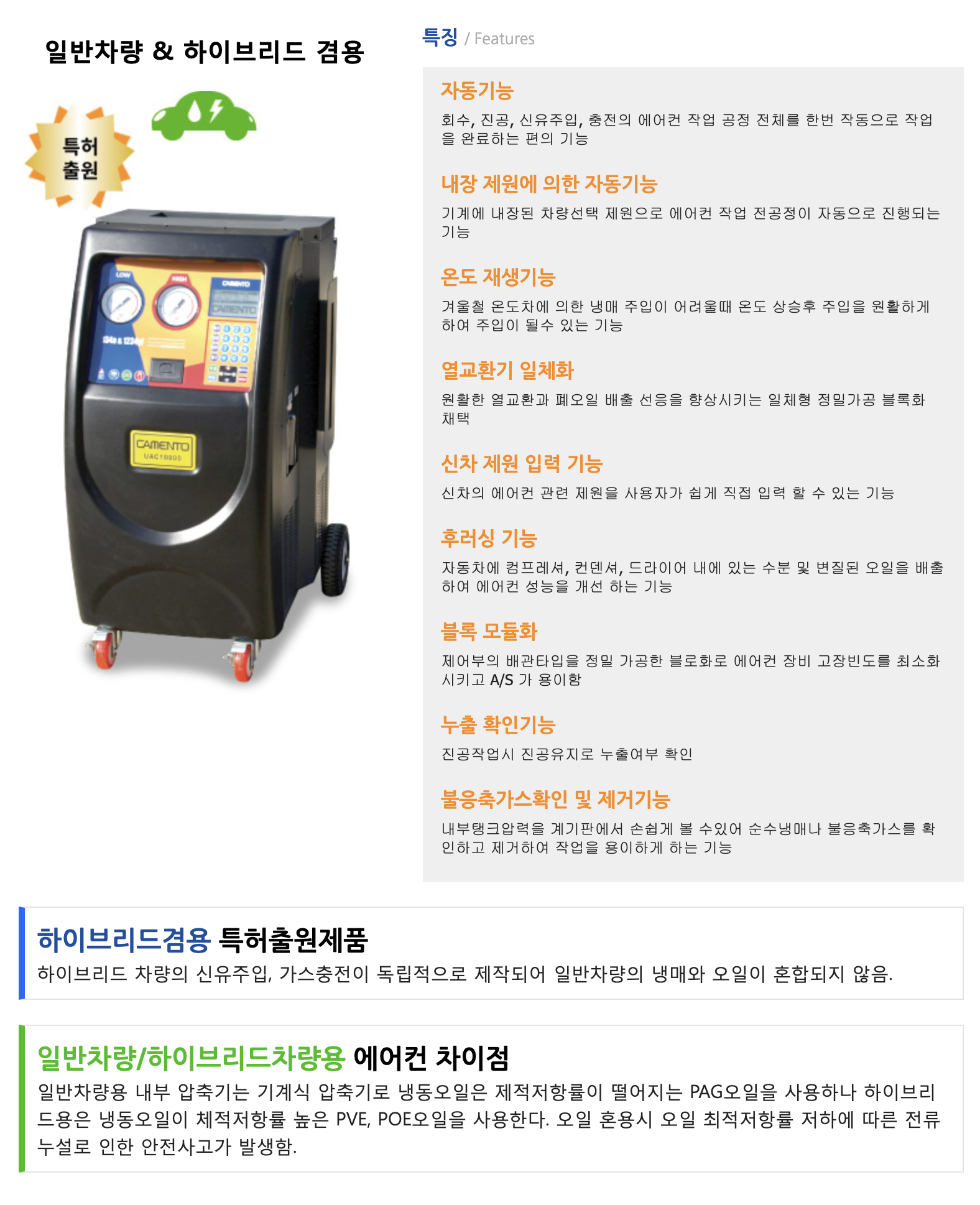 카멘토 에어컨 회수 재생기 UAC-10000 R134a & R1234yf 멀티복합형 일반차량 & 하이브리드 겸용 특허 출원 제품