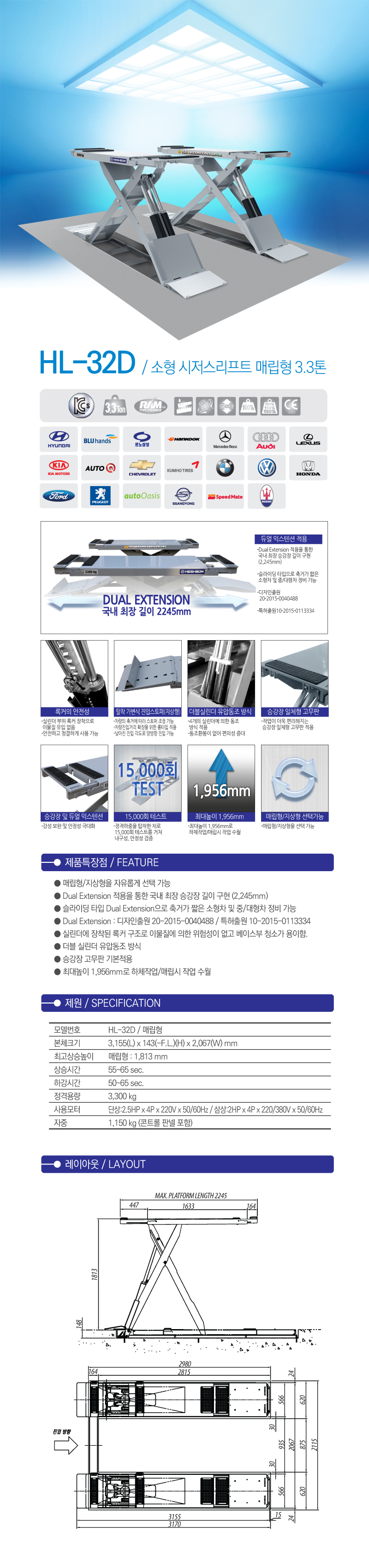 X자형 시저스 리프트 헤스본 HL-32D / 매립형
